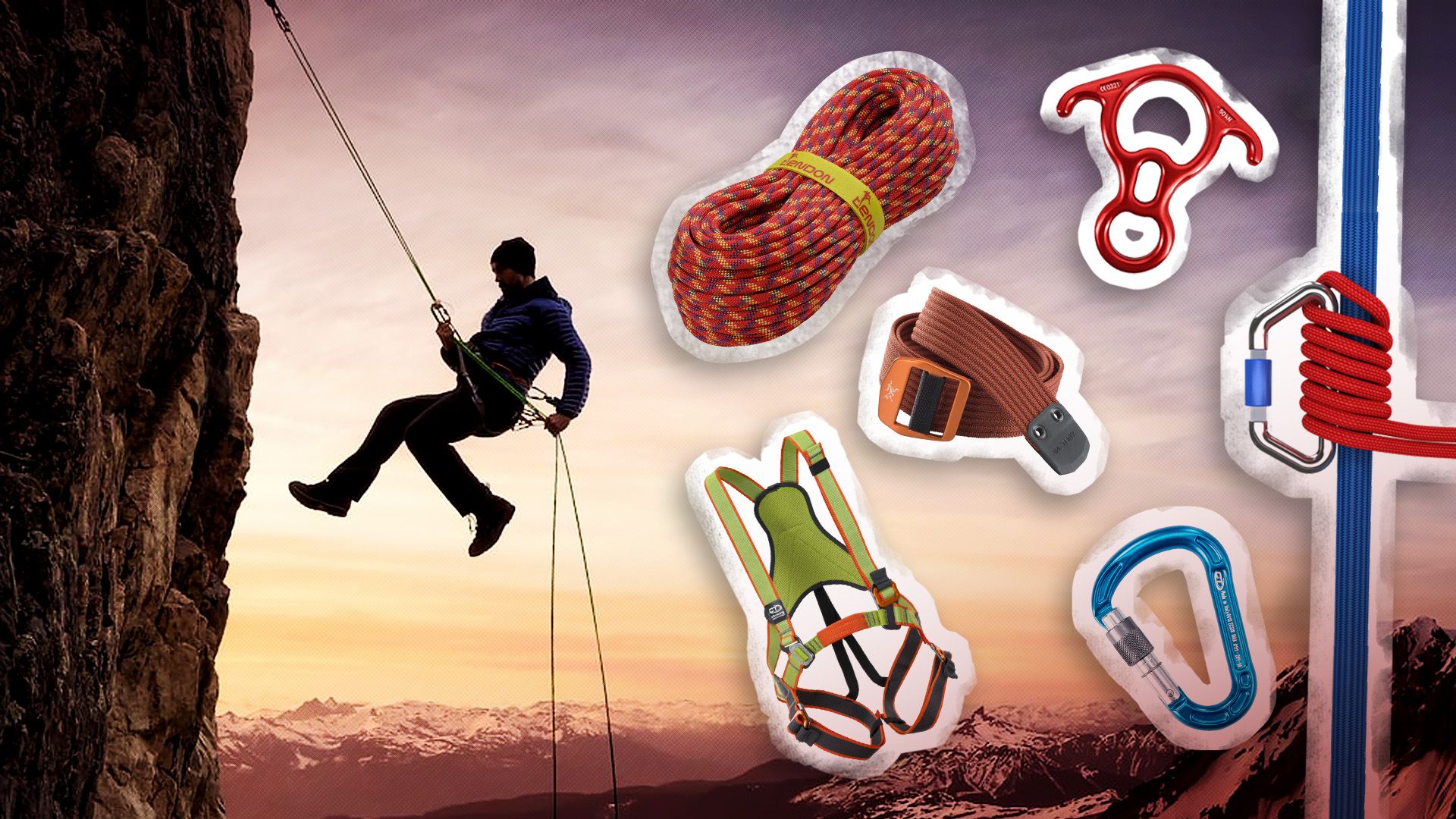 Webbing, ini adalah tali nilon rajutan berbentuk pipih yang punya banyak fungsi. Selain bisa sebagai bahan pembuat harness bisa juga sebagai tambatan/anchor buatan untuk pengait tali utama bila kondisi lapangan tidak memiliki area tambatan yang banyak memadai.
